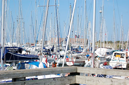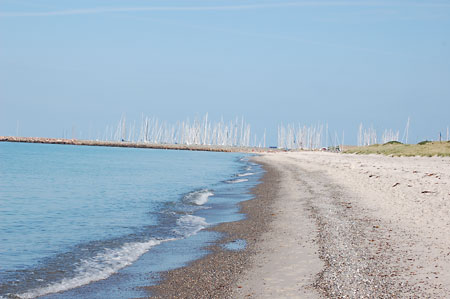 På stranden närmast hamnen med en skog av master!