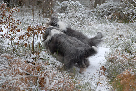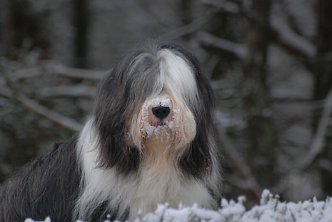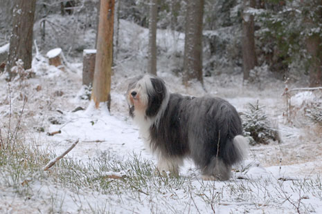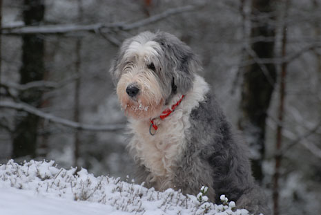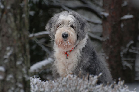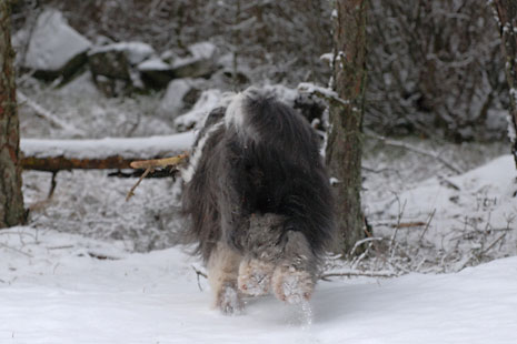 En sista bild på Pinot i vår snöiga skog som nu är blöt