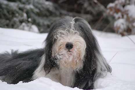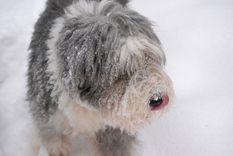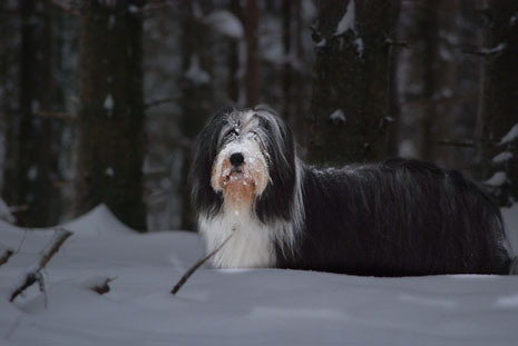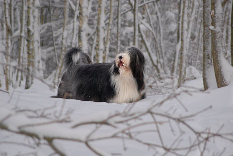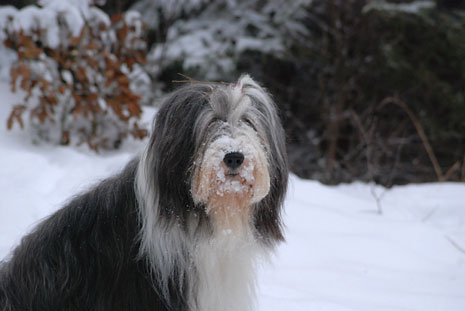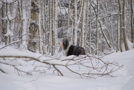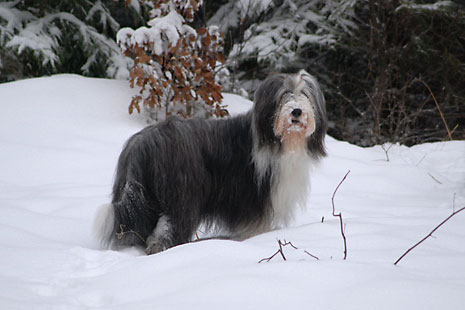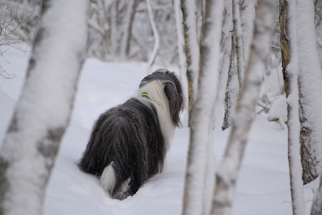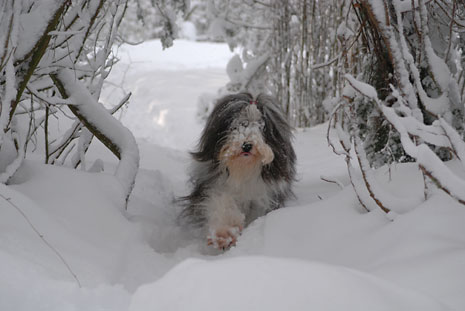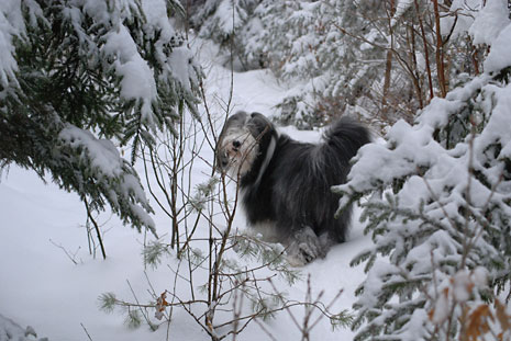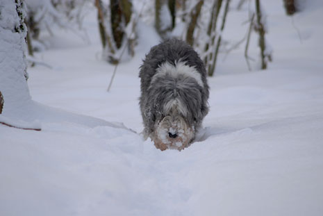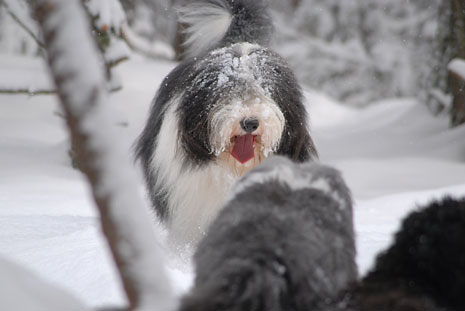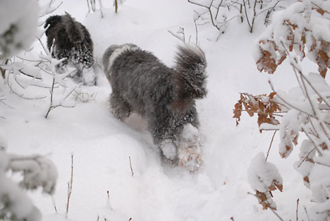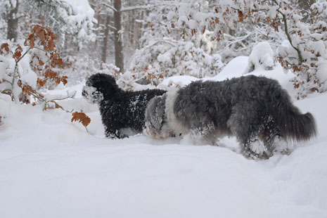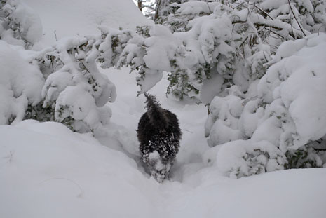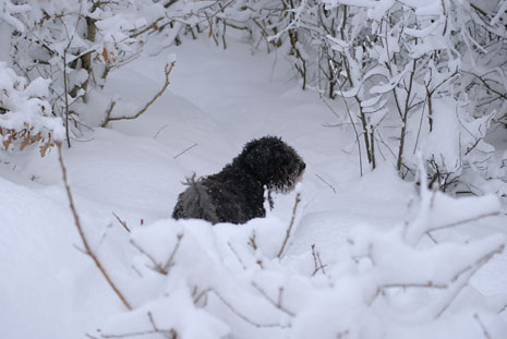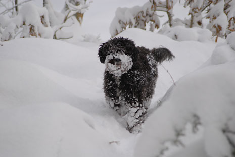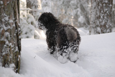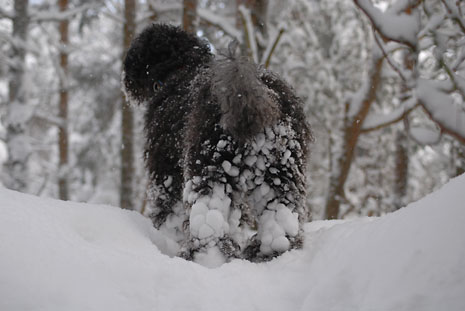 Så här blir en spansk vattenhund i svensk nysnö.