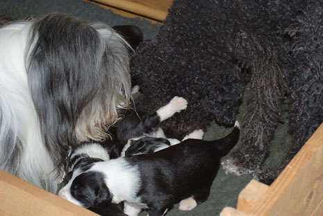 När valparna var 2,5 vecka så tyckte Kiwi att det var dags att