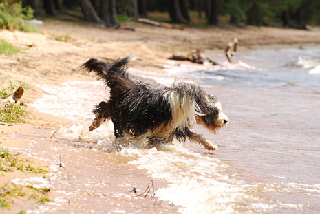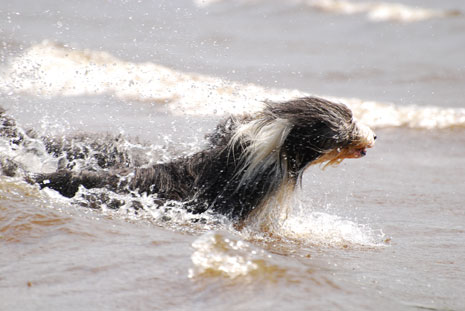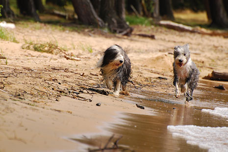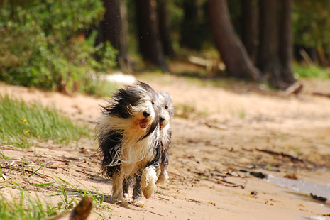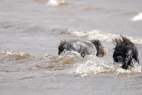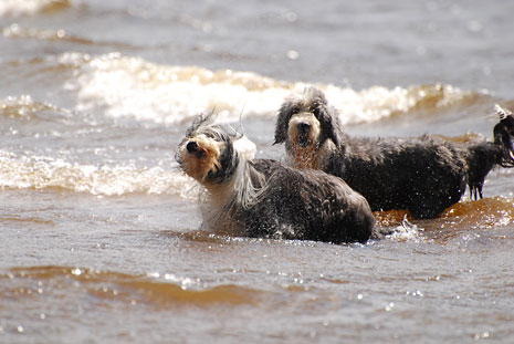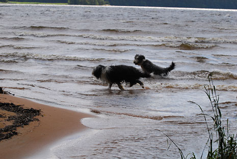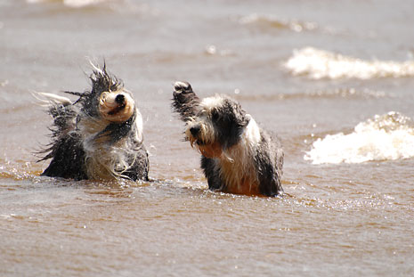 Nere vid sandstranden och de lurviga njuter som vanligt