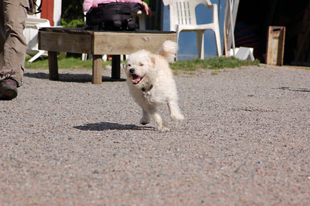 Pinot i full fart på upploppet, hon älskar verkligen detta!