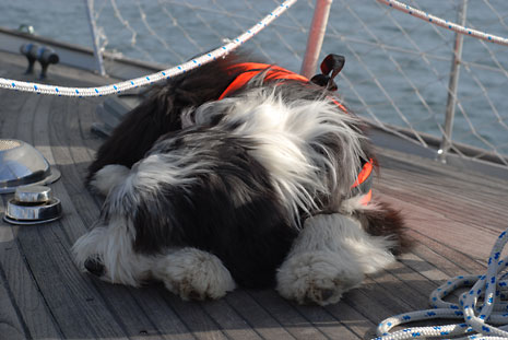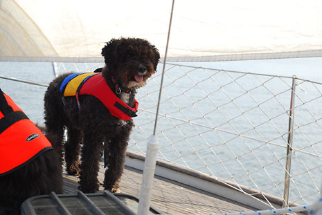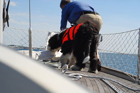 Kiwi är med för att visa hur man beter sig på en segelbåt