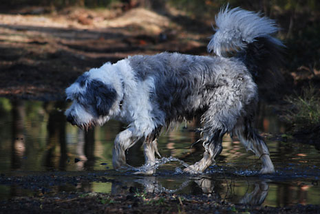 Härligt med alla rena stora pölar i skogen, tycker Imse