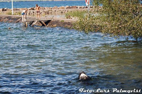 "Vad glor ni på, kan man inte får bada ifred?"