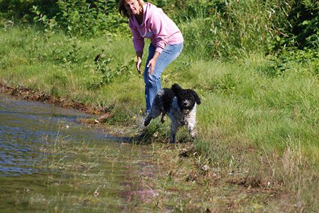 ...först ska hunden apportera något ur vattnet och avlämna