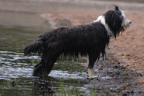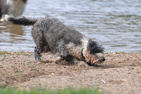 Efter en lång runda i en lerig skog så kom ett bad i Stamsjön...